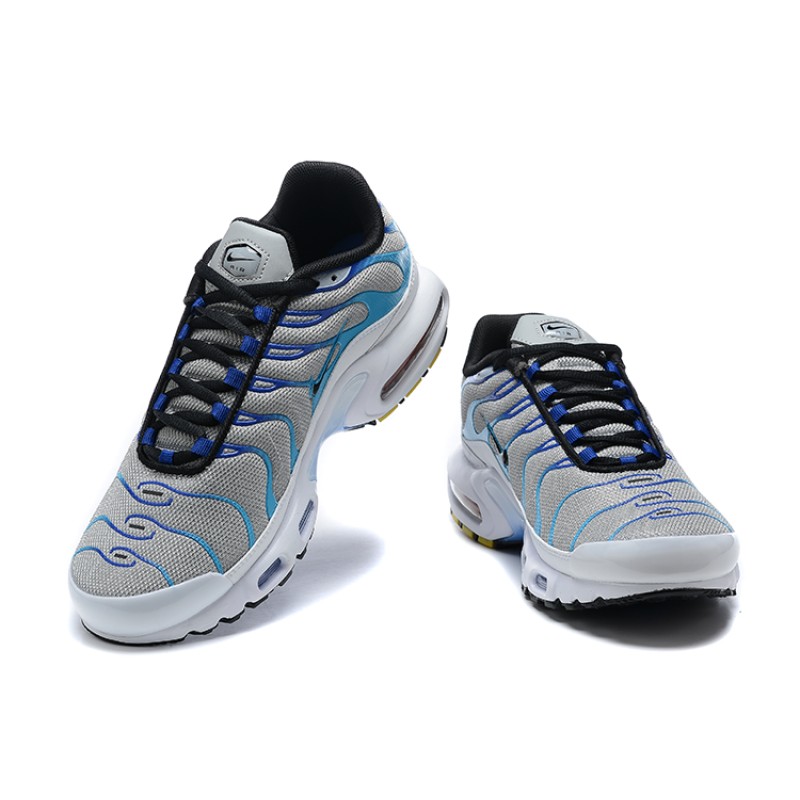 - Contraste équilibré : Le bleu vif ou profond ressort parfaitement sur la toile de fond grise, mettant en évidence les détails emblématiques de la TN comme les vagues latérales, le swoosh ou les bulles d'air.